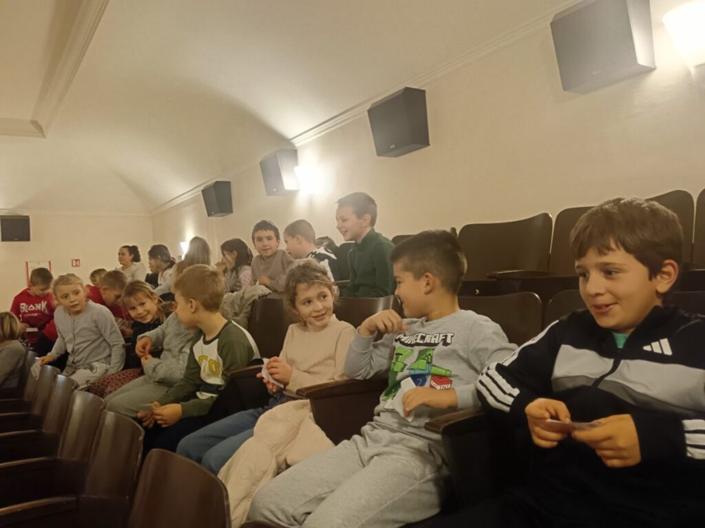Dana 4. prosinca 2025. učenici 1.a i 1.b razreda OŠ Viktora Cara Emina Lovran, u pratnji svojih učiteljica Ivanke Basan i Ljiljane Basarić, posjetili su kino Sloboda u Lovranu, gdje su pogledali kazališnu predstavu Baka Zima u izvedbi Teatra Naranča iz Pule. Predstava je namijenjena najmlađim gledateljima i kroz zanimljive likove i priču o baki Zimi donosi poruke o dobroti, marljivosti, prijateljstvu i važnosti pomaganja drugima. Vizualno bogata i interaktivna izvedba potaknula je maštu djece i približila im čaroliju zime na sceni.