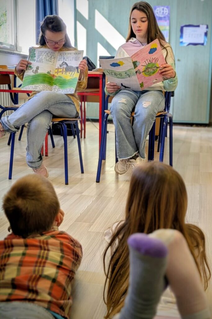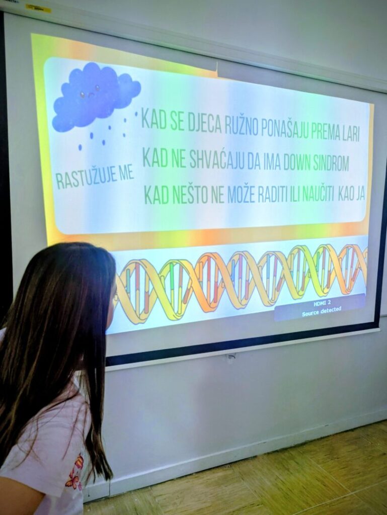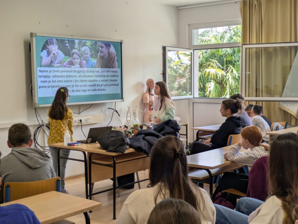 Lara i Ema višim su razredima prezentirale što je Downov sindrom, kako nastaje i što donosi, ali i kako izgleda njihova svakodnevica, njihove aktivnosti i uspjesi te život koji je u mnogočemu jednak životima svih osnovnoškolaca.