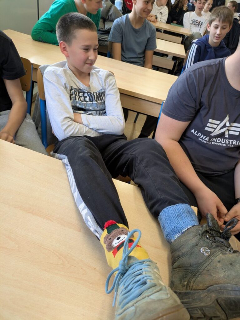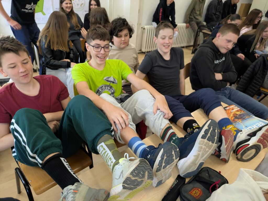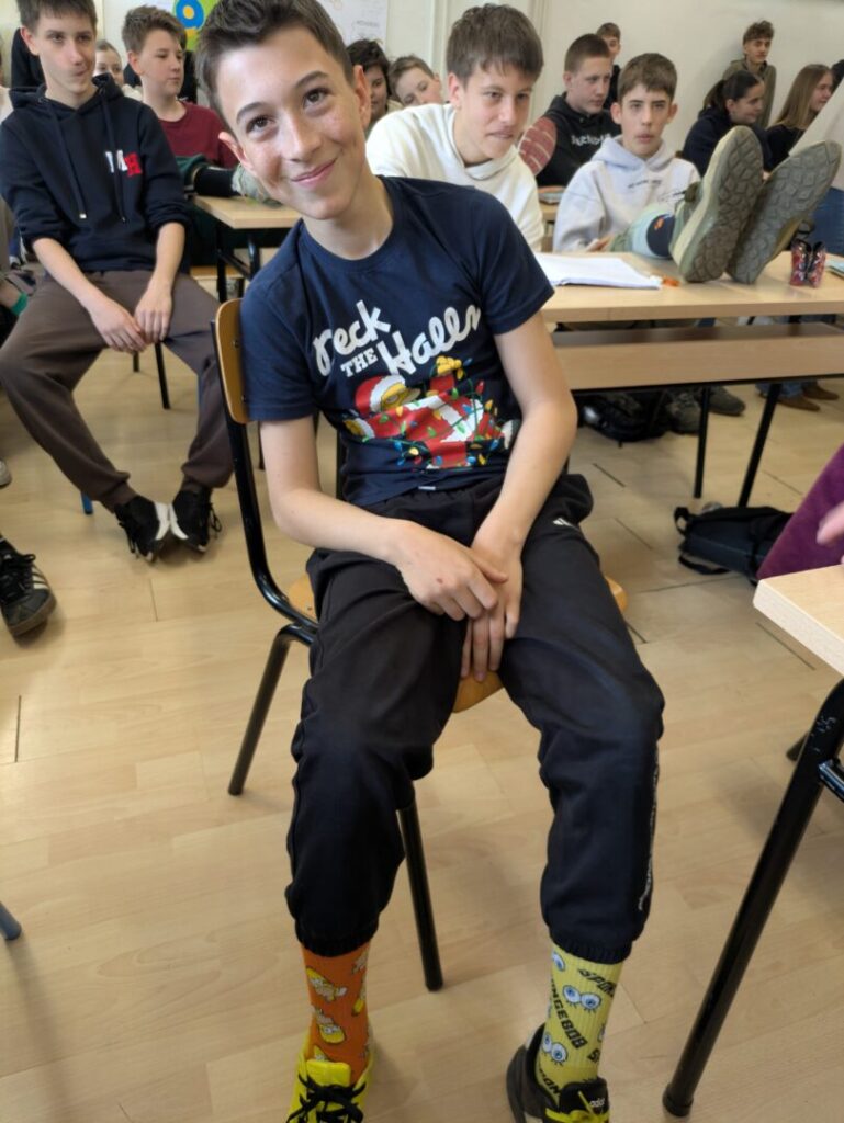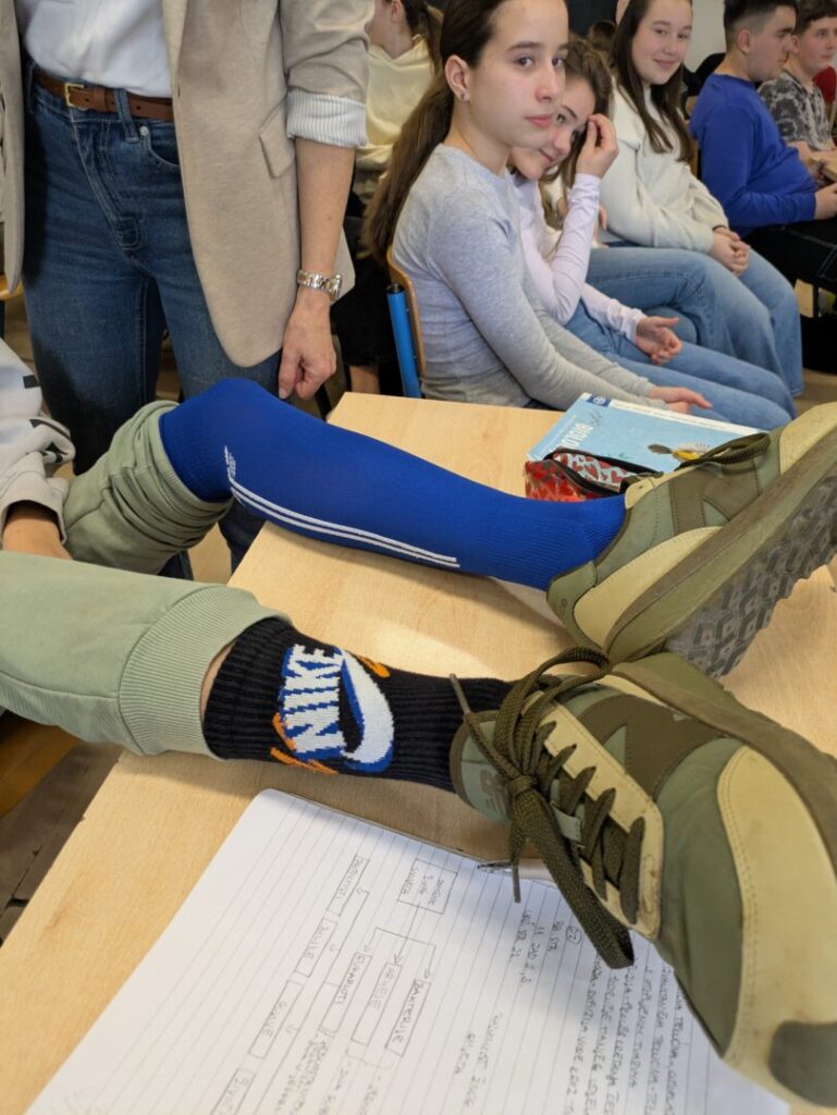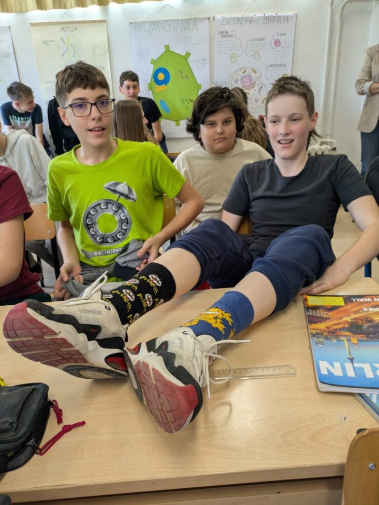 Družeći se s učenicima naše škole, gošće su ocjenjivale različite čarape koje su učenici obukli ovom prilikom, a tri najbolja para nagradile su malim darovima. Svojim kombinacijama čarapa, najviše su ih oduševili Viktor iz 7. c, Vita iz 4. a te Natali iz 3. a.