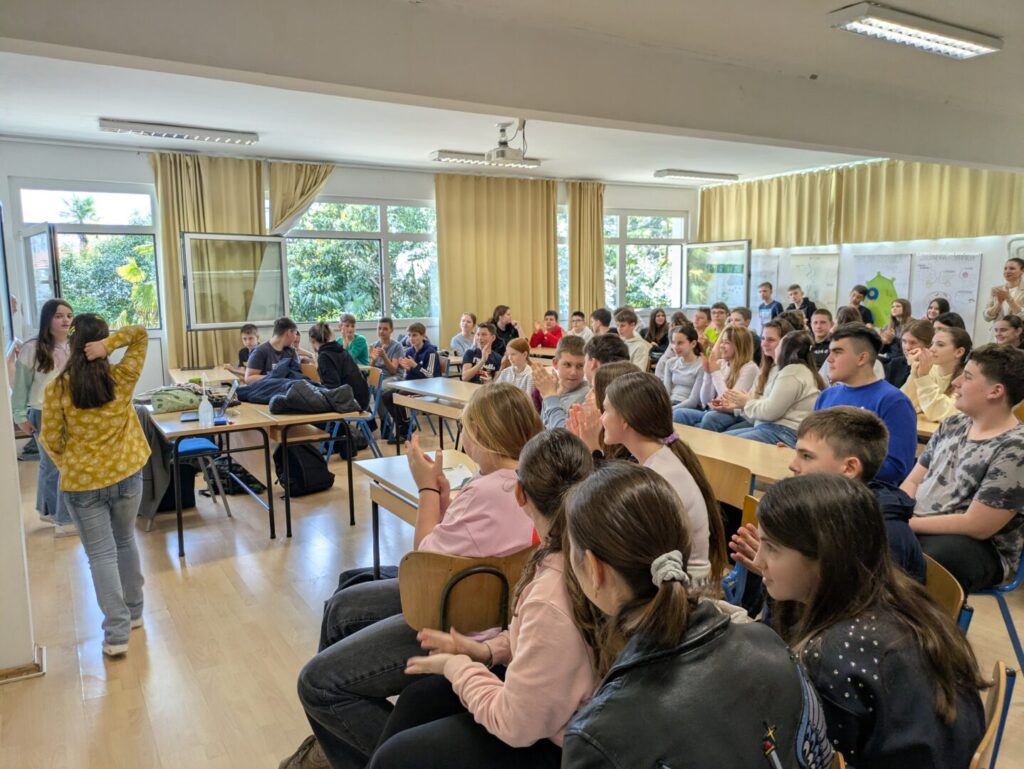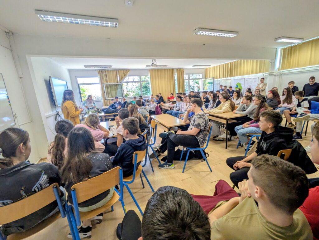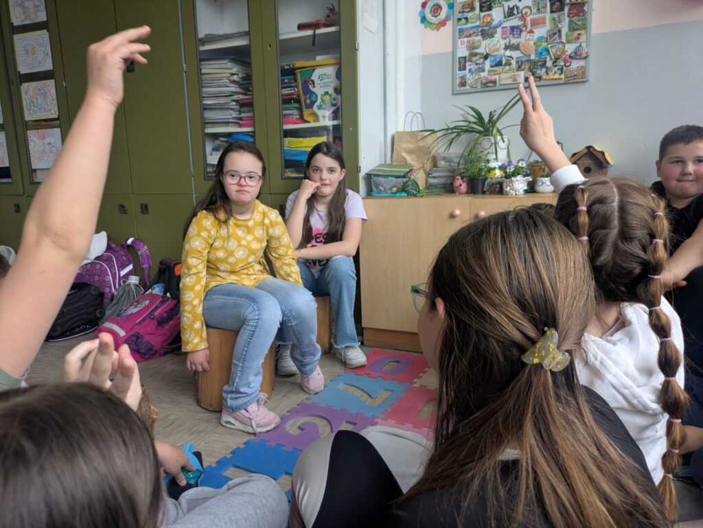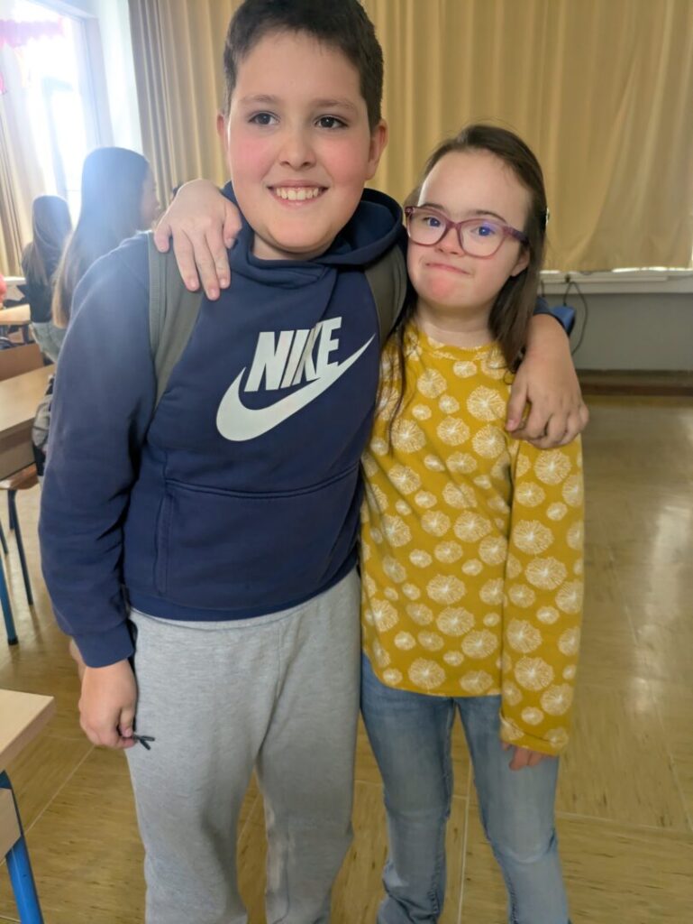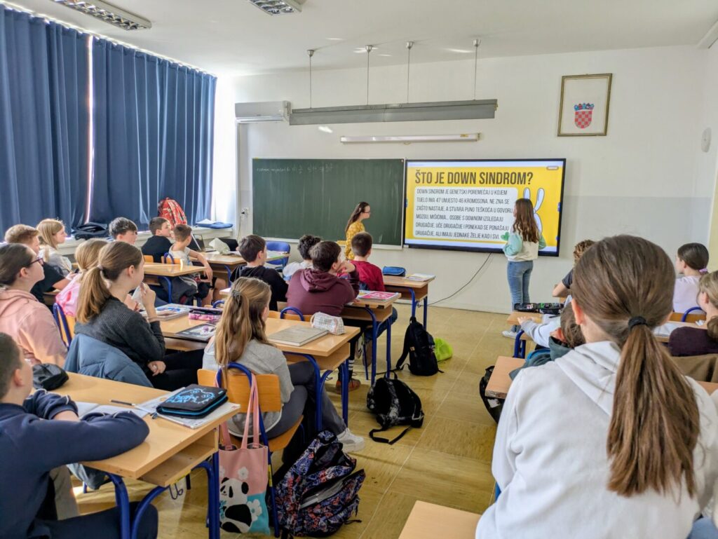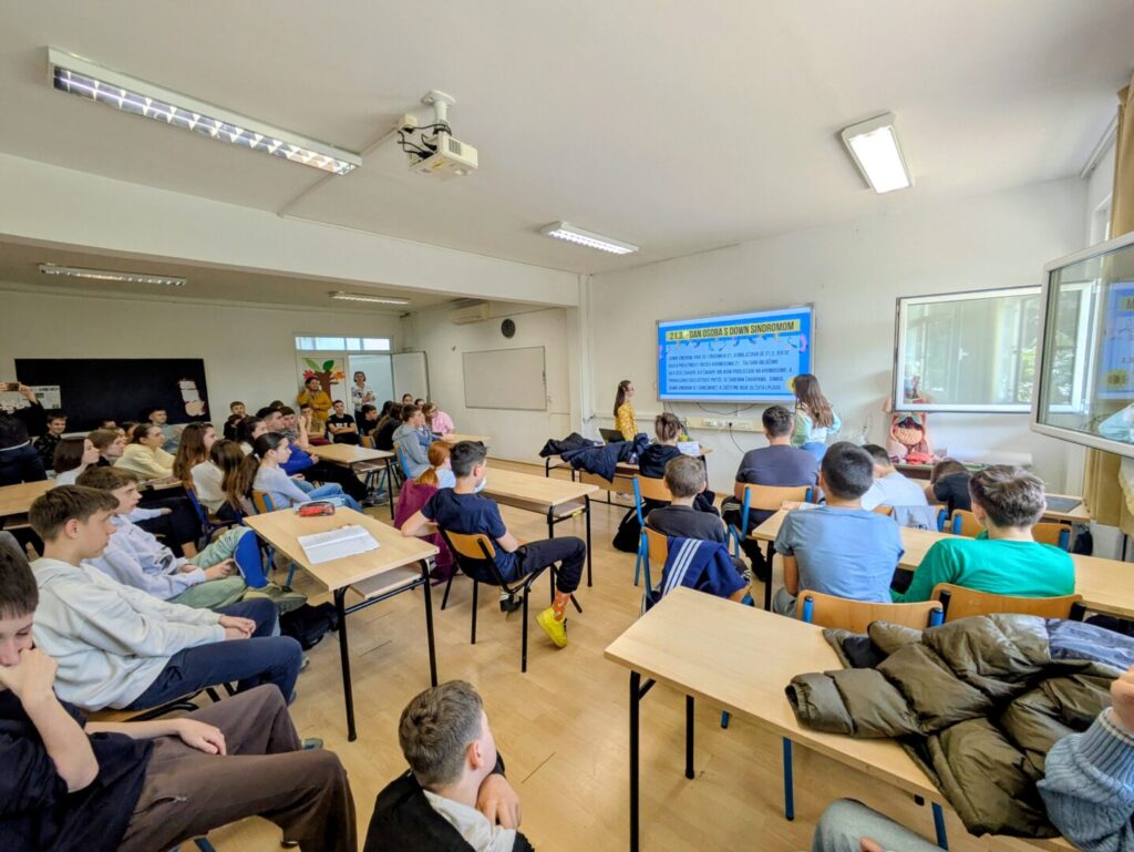 Upoznati s temom i izazovima osoba s Downovim sindromom, učenici su u petak imali priliku upoznati djevojčicu Laru te njezinu sestru Emu. Njihov dolazak posebno je istaknuo ovogodišnji moto Europske zajednice za sindrom Down, Zajedno protiv usamljenosti, kojim su i same posjetiteljice prenijele važnu poruku – da se zajedništvom zaista možemo boriti protiv usamljenosti svakog člana našeg društva.