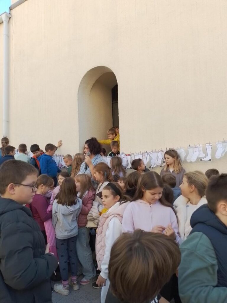 Učenici nižih razreda Osnovne škole Viktora Cara Emina sudjelovali su u ponedjeljak 6.10. na Dječjem javnom skupu u Lovranu. Dječji javni skup organiziralo je Društvo Naša djeca Opatija, a učenici su svojim porukama izrazili svoje želje i potrebe kojima bi poboljšali život djece u našemu gradu. Na papirnatim čarapicama napisali su poruke što oni misle, zašto je obrazovanje važno. U popodnevnim satima u galeriji Laurus otvorena je izložba pod nazivom Snažna kao Pipi. Na izložbi se može vidjeti kako se u pojedinim dijelovima svijeta djeca obrazuju i imaju li svi isto pravo na obrazovanje. Otvorenje izložbe svojim nastupom uveličale su članice skupine Mići čakavčići Osnovne škole Viktora Cara Emina.