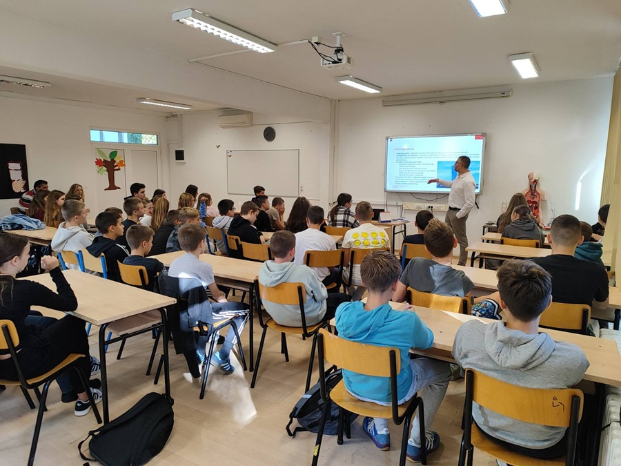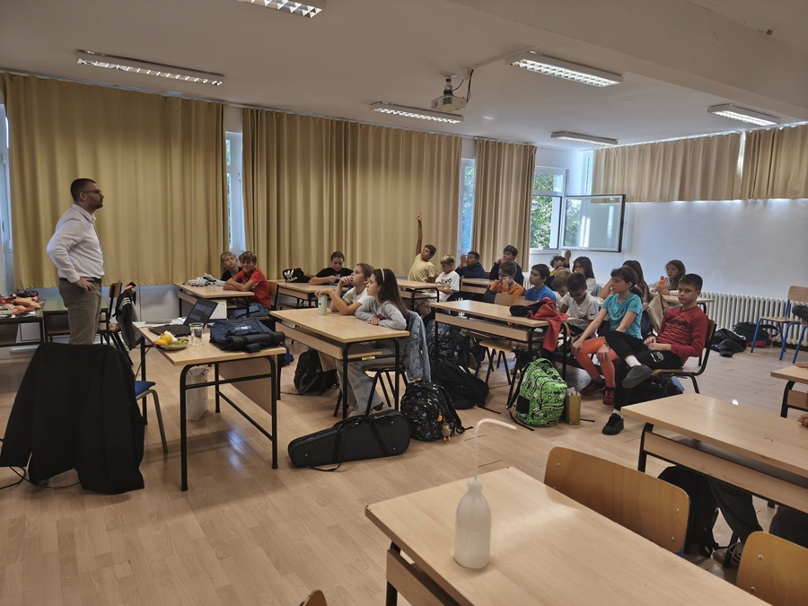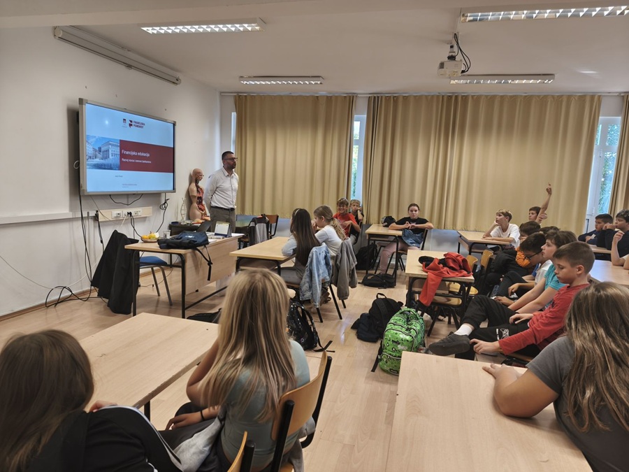U matičnoj školi OŠ Viktora Cara Emina učenici šestih razreda, u utorak 14. listopada 2025., prisustvovali su edukativnom predavanju g. Josipa Pintarića iz HNB-a.
