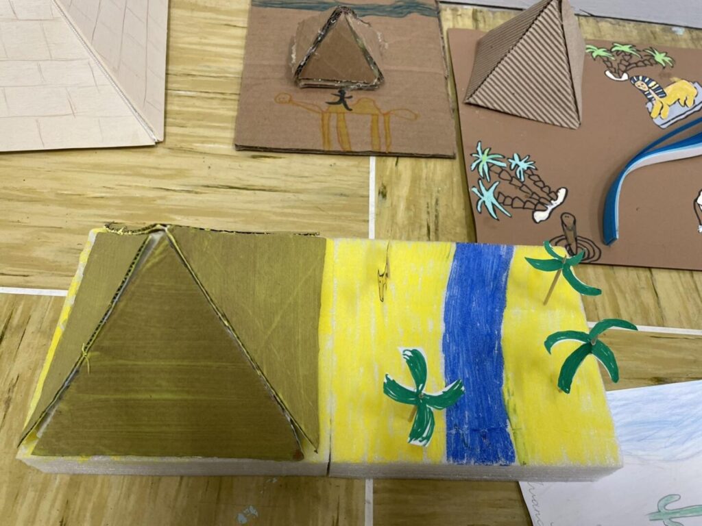 Posebno zanimljiv dio projekta bila je izrada egipatskih piramida od različitih materijala. Učenici su pokazali veliku kreativnost, strpljenje i maštu, a svaka izrađena piramida bila je jedinstvena i posebna na svoj način.