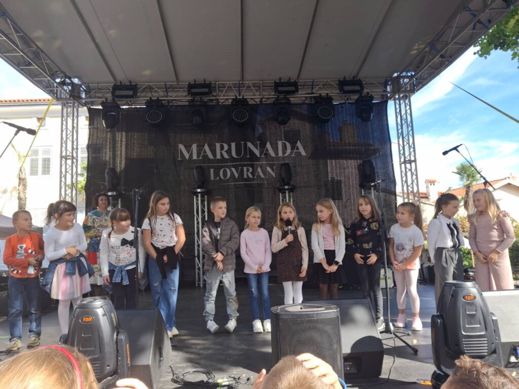 Antonia: Tako je. Ovo je već 19. Mića marunada va Lovrane. Znači da zadnjih 19 godina organiziramo Miću marunadu — DND Opatija u suradnji s Općinom Lovran i Turističkom zajednicom Općine Lovran. Sudjelovat će djeca Osnovne škole Viktora Cara Emina i Osnovne škole “Rikarda Katalinića Jeretova” Opatija, područne škole Ičići i Volosko. Očekujemo više od 300 djece. S nama su volonteri koji nam pomažu — vijećnici Grada Opatije, Volonterski klub Prve riječke hrvatske gimnazije te četiri volontera iz Slovačke koji su ovdje preko Erasmus+ programa.