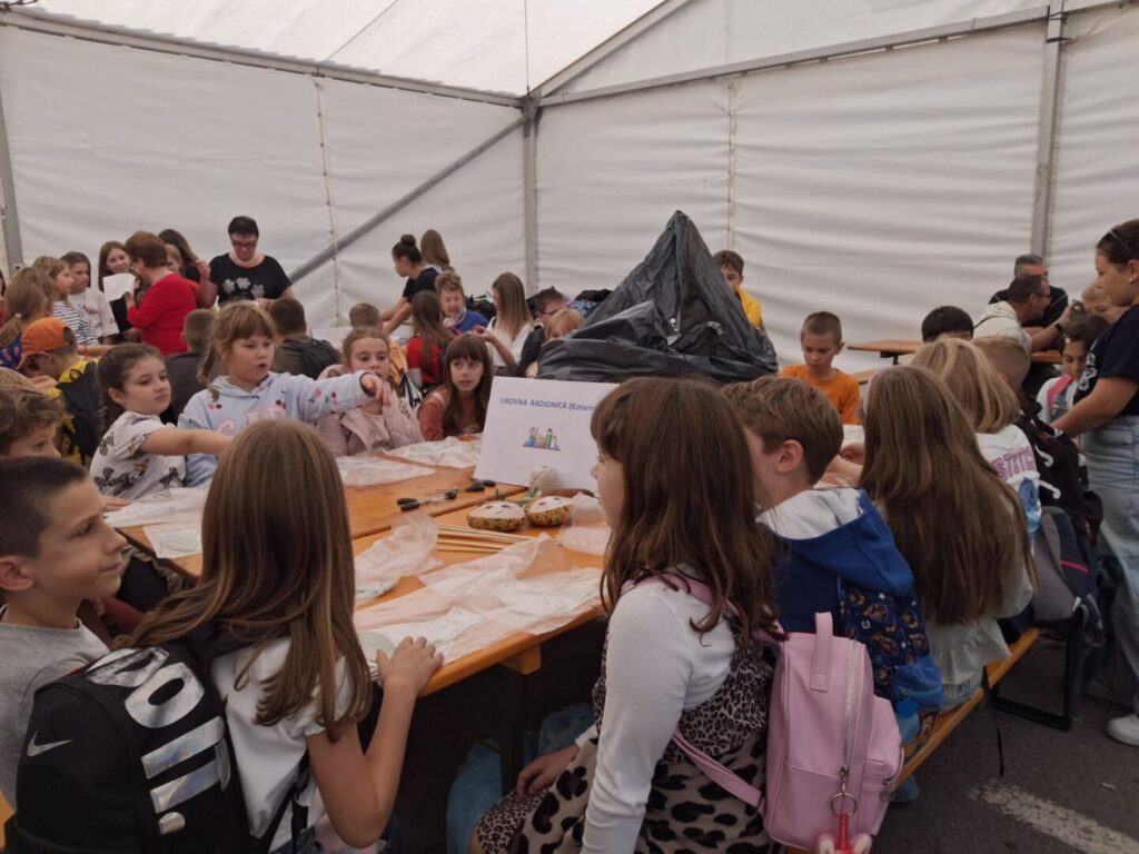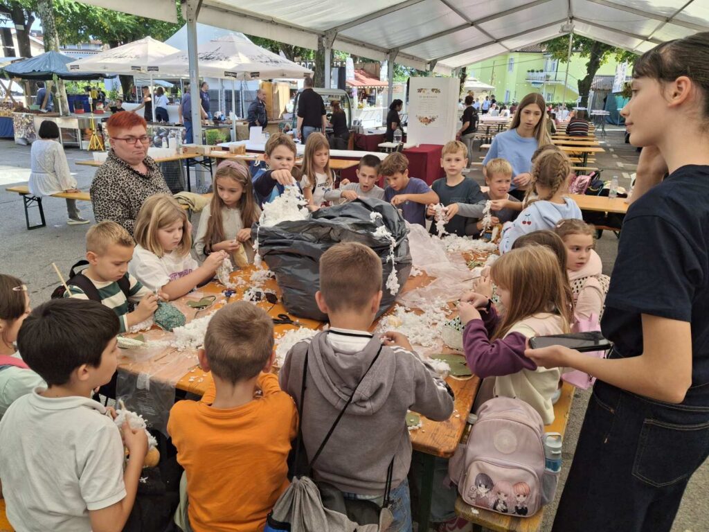 Antonia: Djeci se uvijek sviđaju ovakve radionice. Imamo 13 različitih radionica: Priče našeg kraja, Glagoljica u Lovranu, Niti koje nas spajaju — rikamevanje, četiri likovno-kreativne radionice, eko radionicu, boćanje, vatrogasce, Priča o lovranskim vodonošama, izradu lovranskog guca, Kvarnerovale, Pleti, pleti mrežu i čvor spleti te Naše ča.