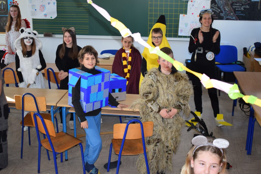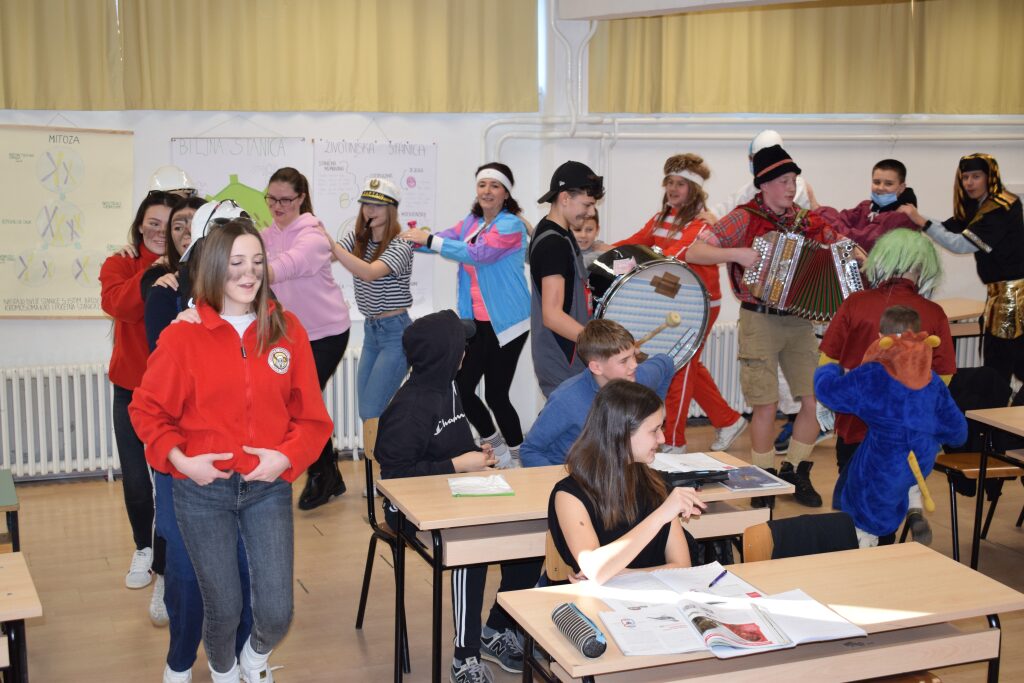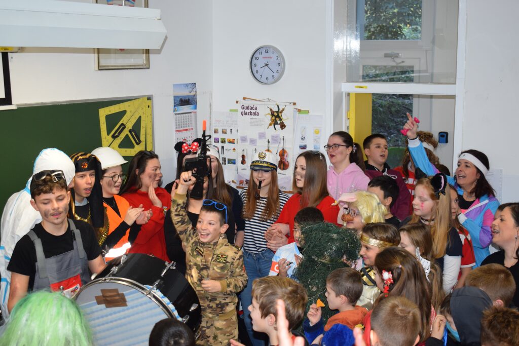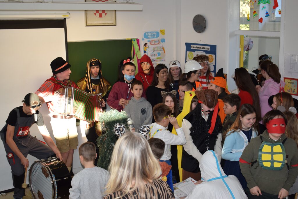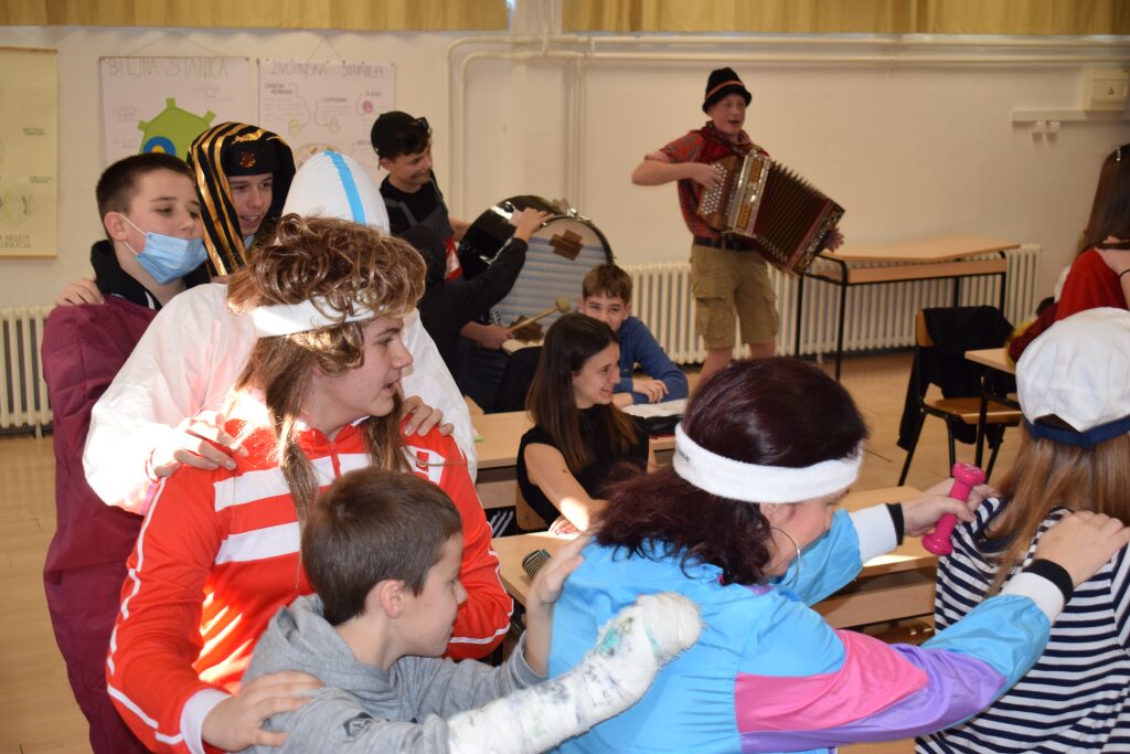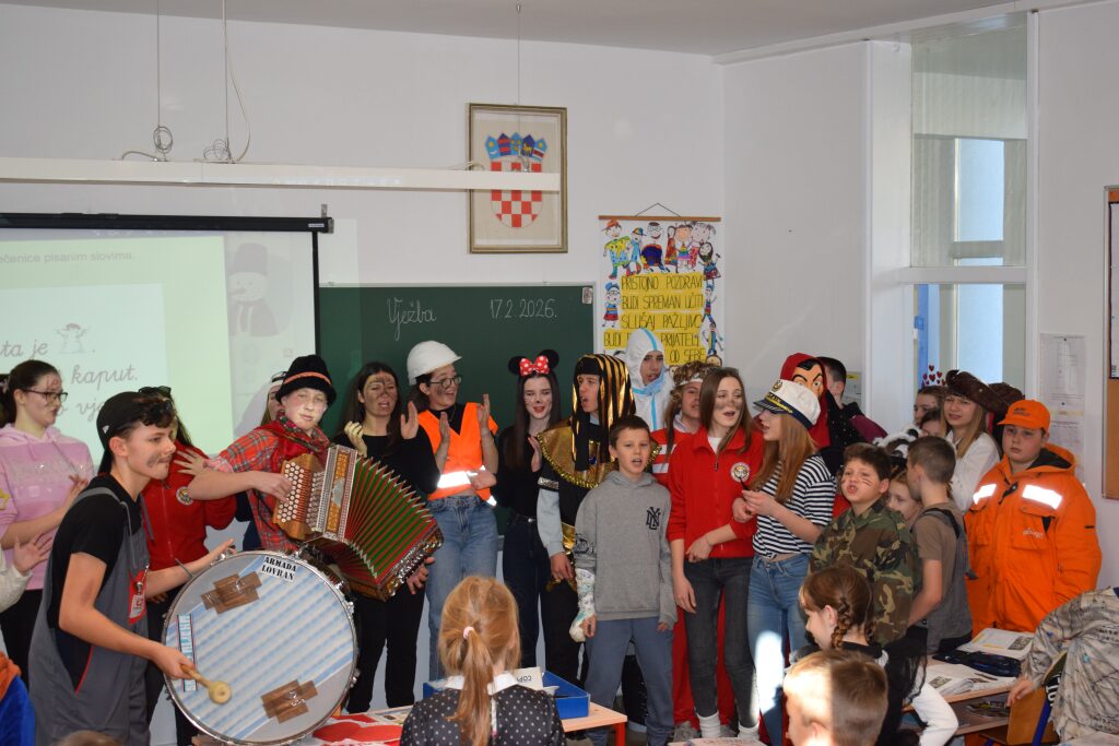 U Osnovnoj škola Viktora Cara Emina danas je bilo posebno veselo – održana je nastava pod maskama. Od ranog jutra školskim hodnicima odjekivali su zvuci harmonike i bubnja, na čemu zahvaljujemo Luki i Marinu, kao i učenicama i učenicima 8.b razreda koji su svojim glasovima dodatno doprinijeli atmosferi. Obišli su sve razrede i unijeli glazbu u svaku učionicu, a u nekima se spontano i zaplesalo. Brojne maštovite maske oduševile su i nasmijale, a dobrog raspoloženja nije nedostajalo.