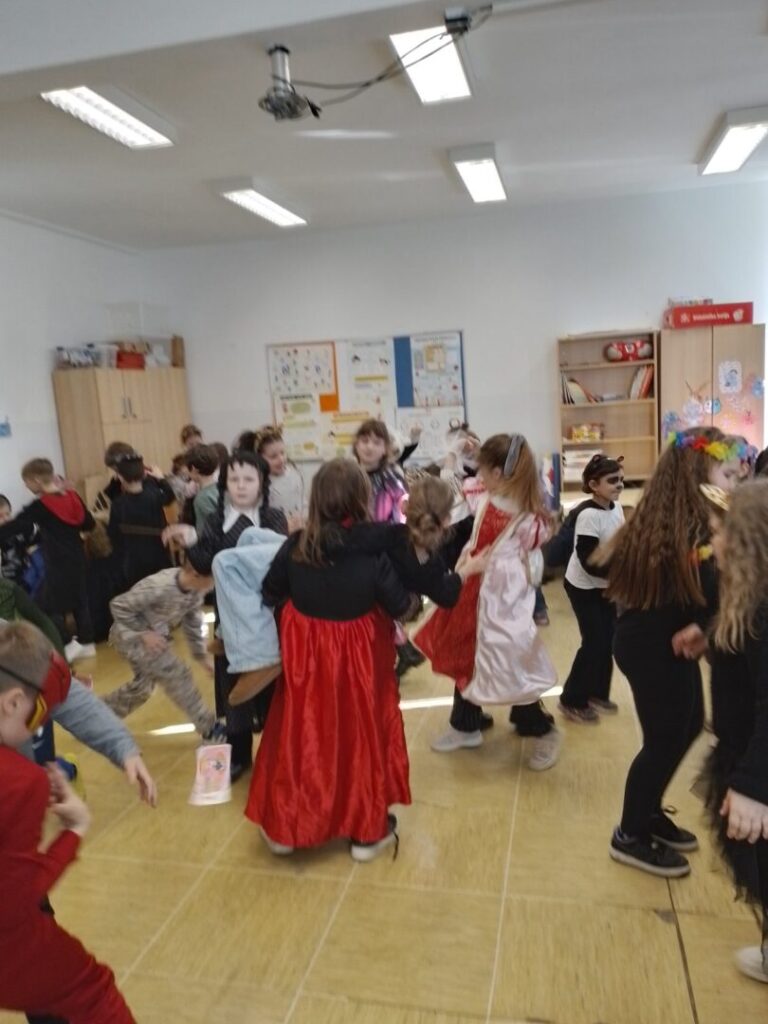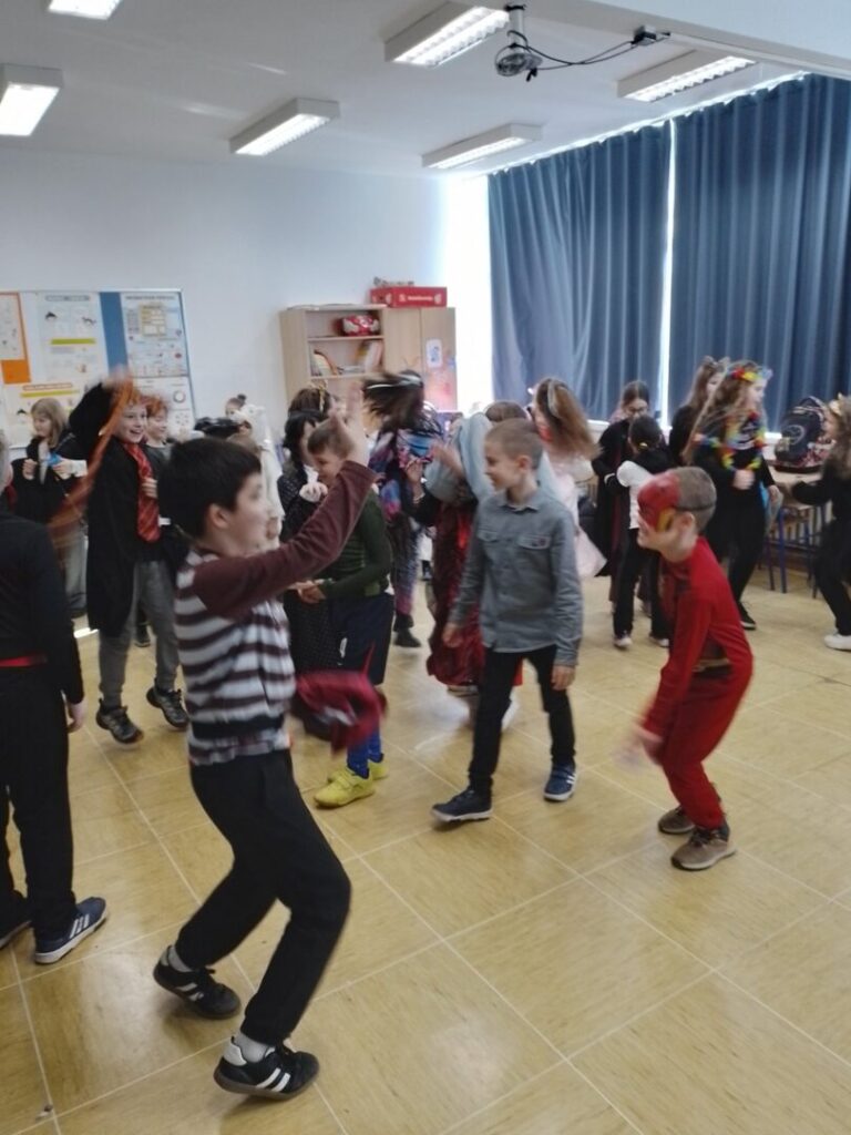 Učenici su opisivali svoje kostime i tako vježbali pravilno usmeno izražavanje. Rješavali su prigodne zagonetke. Razred je bio ispunjen šarenilom i raznolikim likovima: princezama, superherojima, životinjama i likovima iz crtića. Organizirane su pokretne igre i ples pod maskama. Učenici su sudjelovali u maloj razrednoj povorci uz glazbu i veselo raspoloženje.