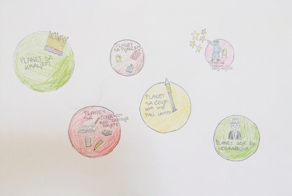 Na satu lektire učenici su imali dodatni zadatak nacrtati planete koje Mali princ posjećuje te simbolima prikazati njihove stanovnike. Njihovi radovi pokazali su veliku razinu kreativnosti, a kroz razgovor o lisici, ruži, pilotu i drugim likovima, dotaknuli su se i važnih pouka koje ovo djelo donosi. Posebno su izdvojili misli koje su ih se dojmile, poput: