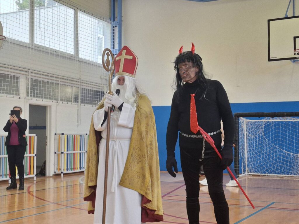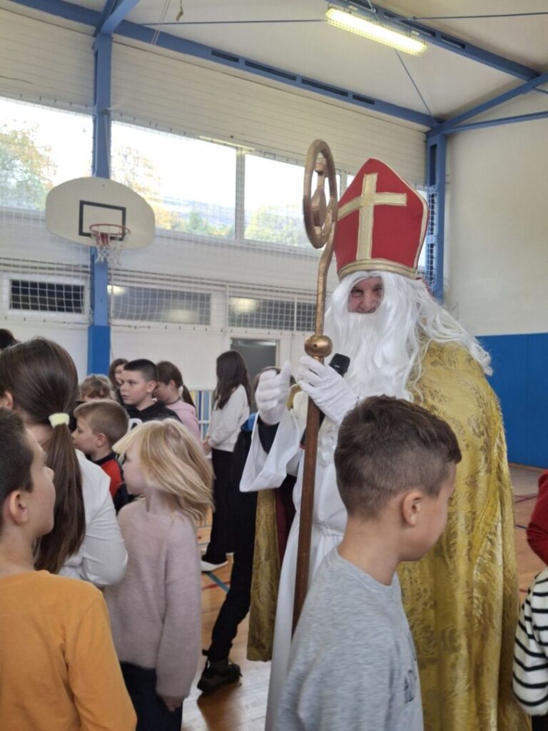 Uz predstavu i razgovor, uslijedilo je još jedno iznenađenje – dolazak svetog Nikole i krampusa koji su učenicama i učenicima podijelili slatkiše i dodatno obogatili već veselo predblagdansko ozračje.