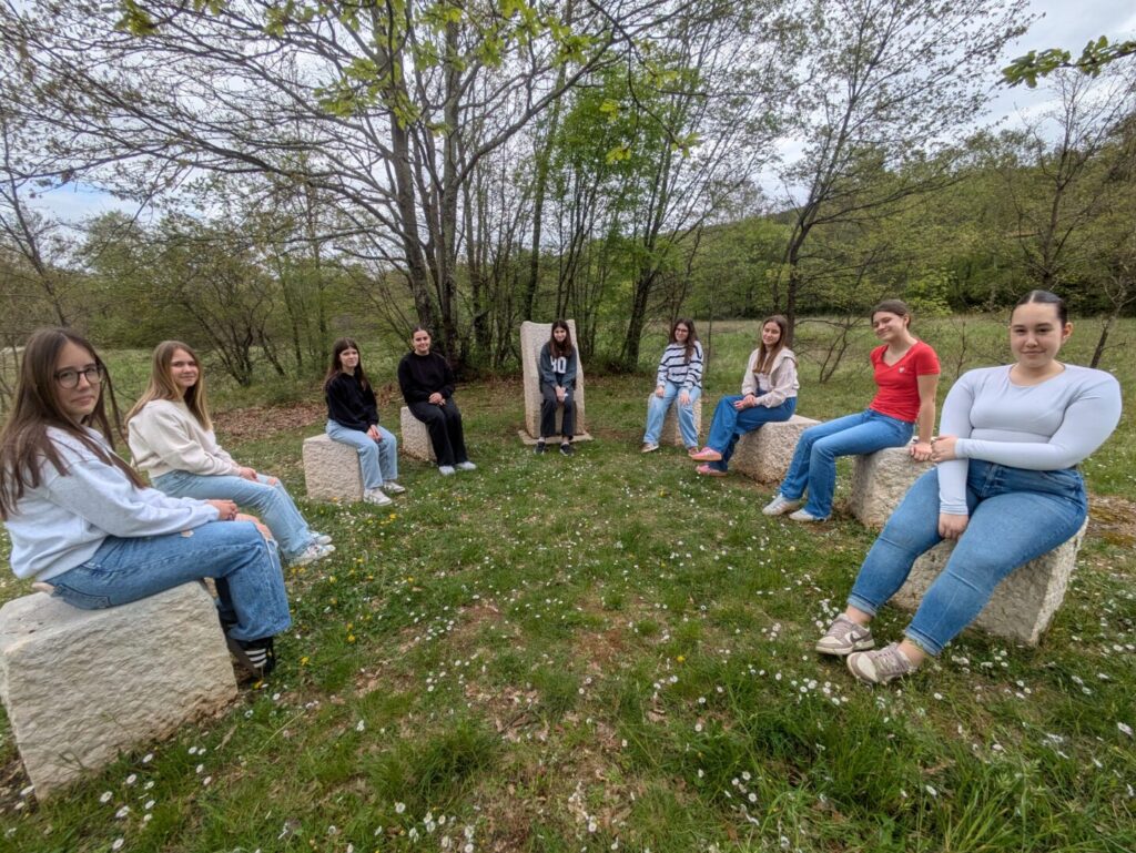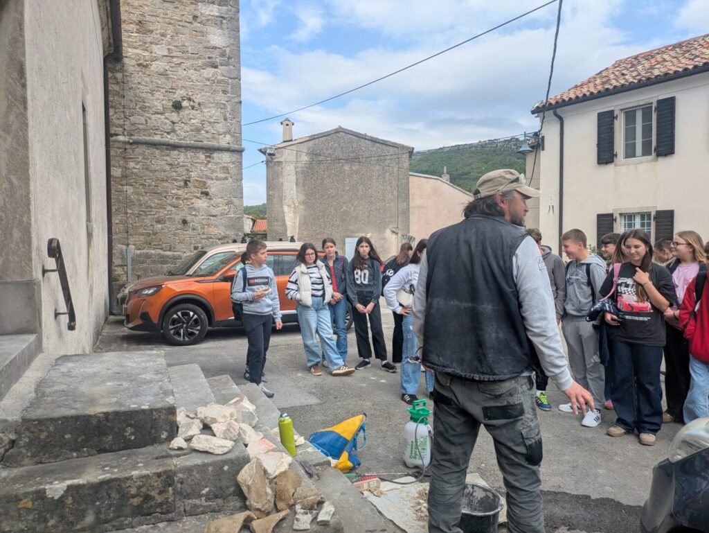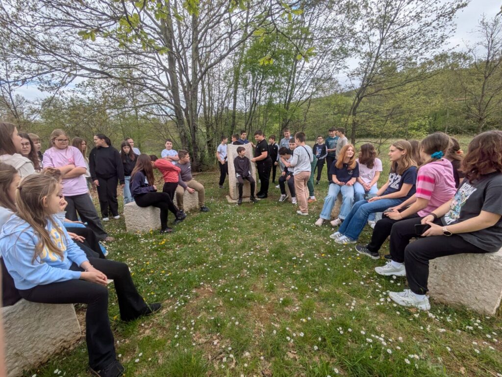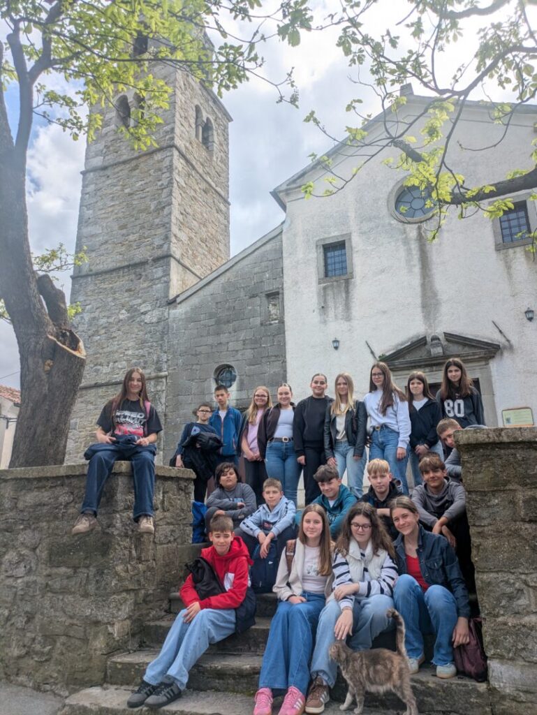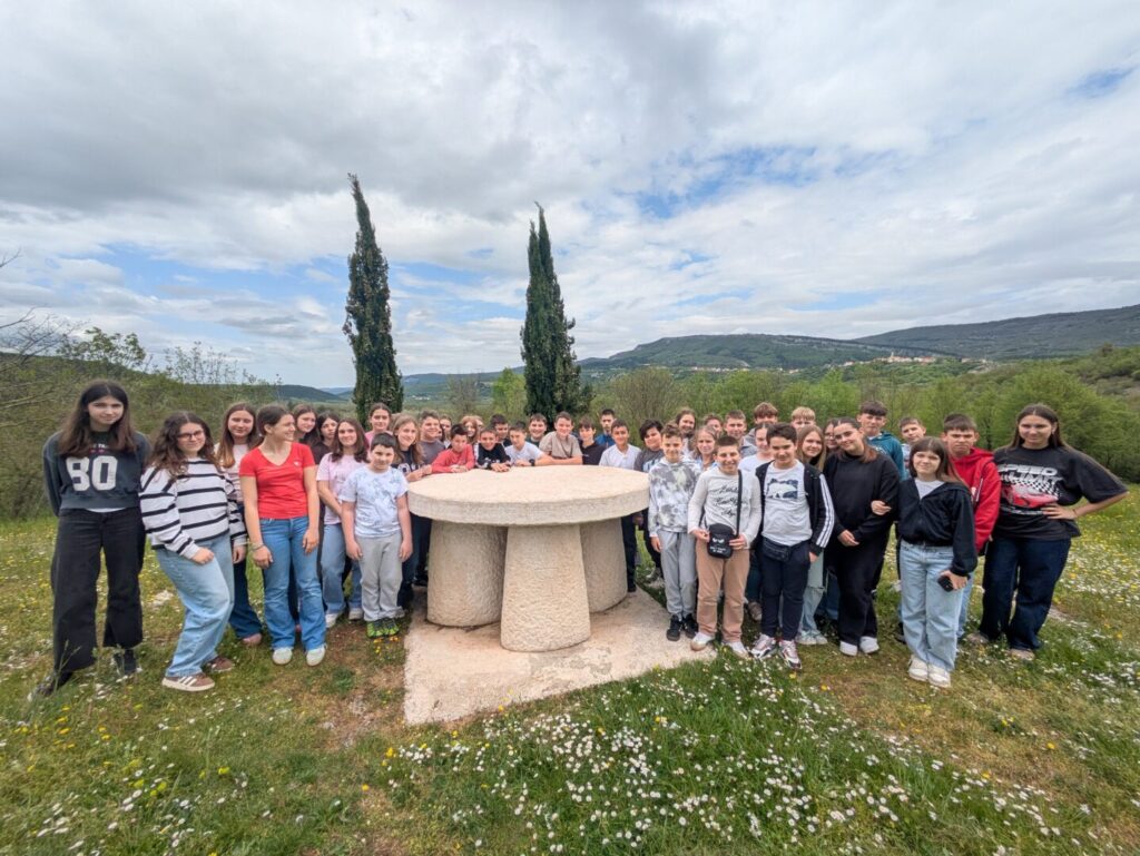U srijedu, 15. travnja 2026., u jutarnjim satima učenici šestih razreda OŠ Viktora Cara Emina iz Lovrana i PŠ Eugena Kumičića iz Mošćeničke Drage uputili su se prema Roču i Humu. U pratnji učiteljica Maje Barković, Ane Bunete te Melite Stanić-Šepić krenuli su putevima glagoljaša. U Roču su posjetili staru glagoljsku tiskaru, gdje su proučili repliku tiskarskog stroja, a kod crkvice sv. Bartola imali su priliku razgovarati s restauratorom koji ih je uputio gdje mogu pronaći glagoljska slova na crkvi i drugim kućama u Roču. Zatim su razgledali Roč i nastavili put prema Humu, najmanjem gradu na svijetu. Vozili su se Alejom glagoljaša dugom 7 km, a kod nekih su spomenika izišli fotografirati se i pomnije ih promotriti. U Humu su planirali posjetiti Muzej starih zanata, no muzej je bio zauzet pa su prošetali uskim uličicama Huma i u popodnevnim se satima vratili u Lovran.