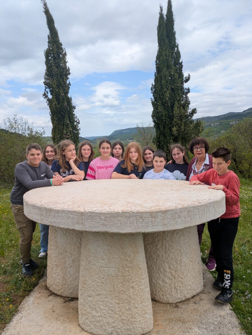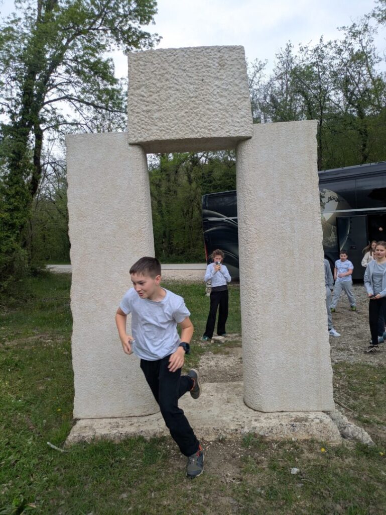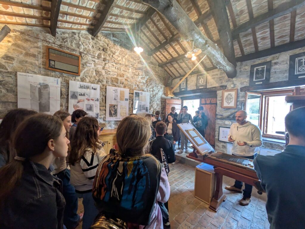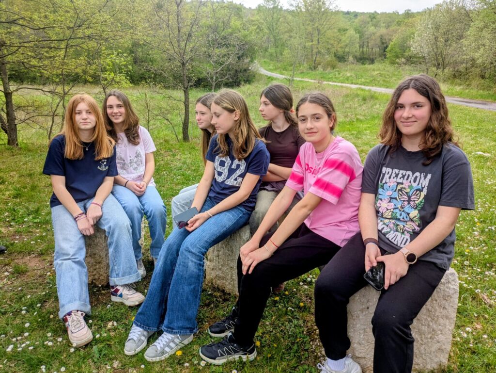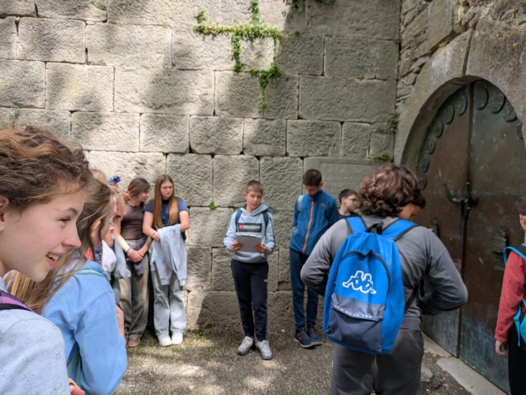 U srijedu, 15. travnja 2026., u jutarnjim satima učenici šestih razreda OŠ Viktora Cara Emina iz Lovrana i PŠ Eugena Kumičića iz Mošćeničke Drage uputili su se prema Roču i Humu. U pratnji učiteljica Maje Barković, Ane Bunete te Melite Stanić-Šepić krenuli su putevima glagoljaša. U Roču su posjetili staru glagoljsku tiskaru, gdje su proučili repliku tiskarskog stroja, a kod crkvice sv. Bartola imali su priliku razgovarati s restauratorom koji ih je uputio gdje mogu pronaći glagoljska slova na crkvi i drugim kućama u Roču. Zatim su razgledali Roč i nastavili put prema Humu, najmanjem gradu na svijetu. Vozili su se Alejom glagoljaša dugom 7 km, a kod nekih su spomenika izišli fotografirati se i pomnije ih promotriti. U Humu su planirali posjetiti Muzej starih zanata, no muzej je bio zauzet pa su prošetali uskim uličicama Huma i u popodnevnim se satima vratili u Lovran.