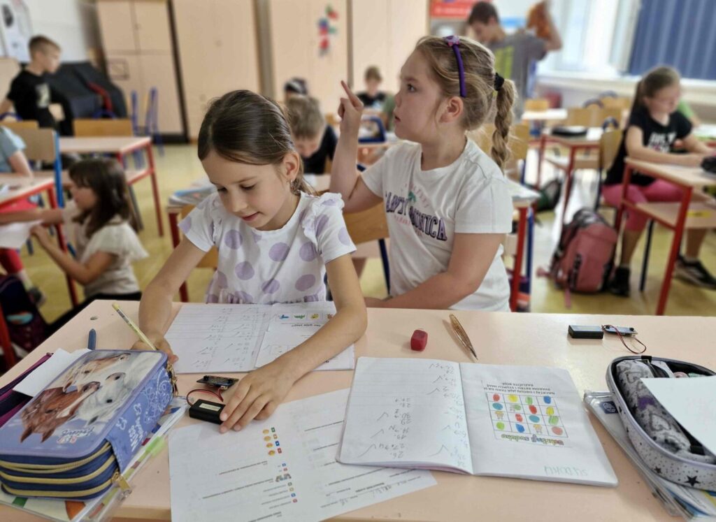 Danas su učenici 1.b. s učiteljicom Anom B.J. i Željkom M. vježbali abecedu i redne brojeve.