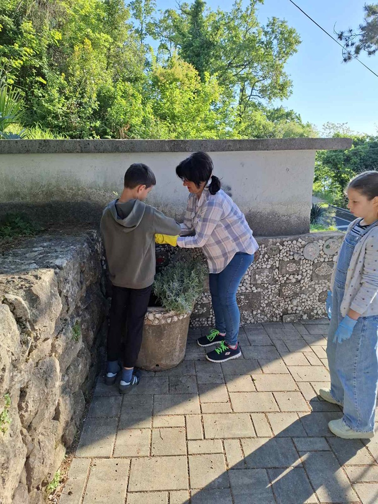 U četvrtak 23. travnja 2026. godine u područnoj je školi održana ekoakcija čišćenja i uređivanja školskog okoliša. Sudjelovali su svi učenici škole i njihovi učitelji. Nakon sakupljanja smeća, učenici su grabljali, okopavali, orezivali, plijevili, sadili, zalijevali i čistili okoliš. Neki su učenici pritom pokazali zavidno znanje u poznavanju vrtlarskih aktivnosti, a drugi stekli neke nove vještine. Svi su uživali u prekrasnom sunčanom danu provedenom u društvu prijatelja na svježem zraku, ali i veselili se plodu zajedničkog rada. Ovim putem se zahvaljujemo Turističkoj zajednici Mošćenička Draga što je i ove godine podržala provođenje ekoakcije u područnoj školi te donacijom sadnica mediteranskog bilja, zemlje i posuda za cvijeće omogućila uljepšavanje okoliša škole.