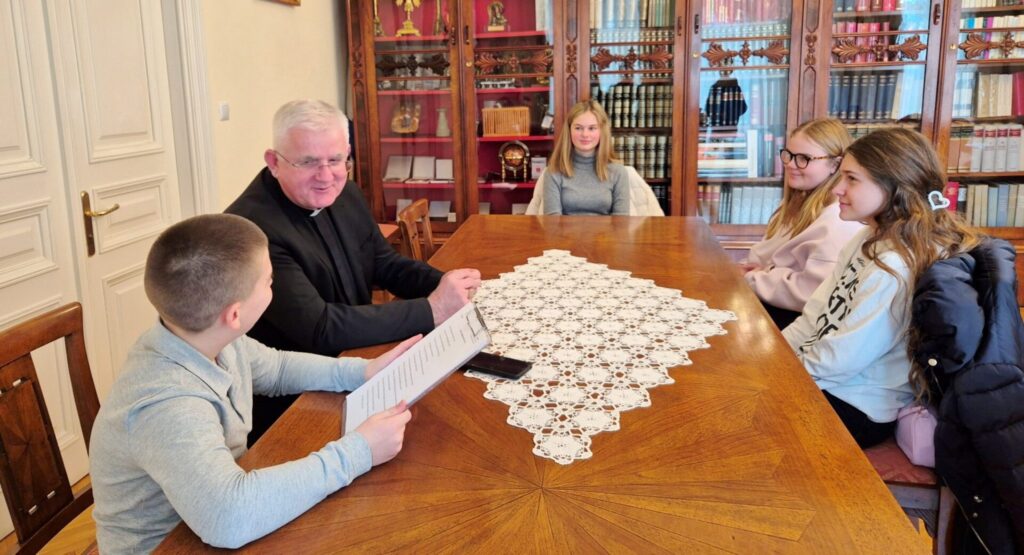 Članovi ekipe Glasa škole — Ela Krapić, Liza Vlah, Fides Orczykowski, Luka Pudić i Niko Elioni — u pratnji učiteljice Ane Bunete posjetili su nadbiskupa Matu Uzinića koji je nedavno proglašen najpozitivnijom osobom 2025. godine. Monsinjor Uzinić odgovorio je na pitanja o svom djetinjstvu i školovanju te o tome kako danas izgleda njegov dan i što ga najviše raduje. Budući da je u subotu, 24. siječnja, obilježen Međunarodni dan obrazovanja, nadbiskup je imao i poruke za djecu, ali i za učitelje. Razgovor s nadbiskupom pročitajte u nastavku.