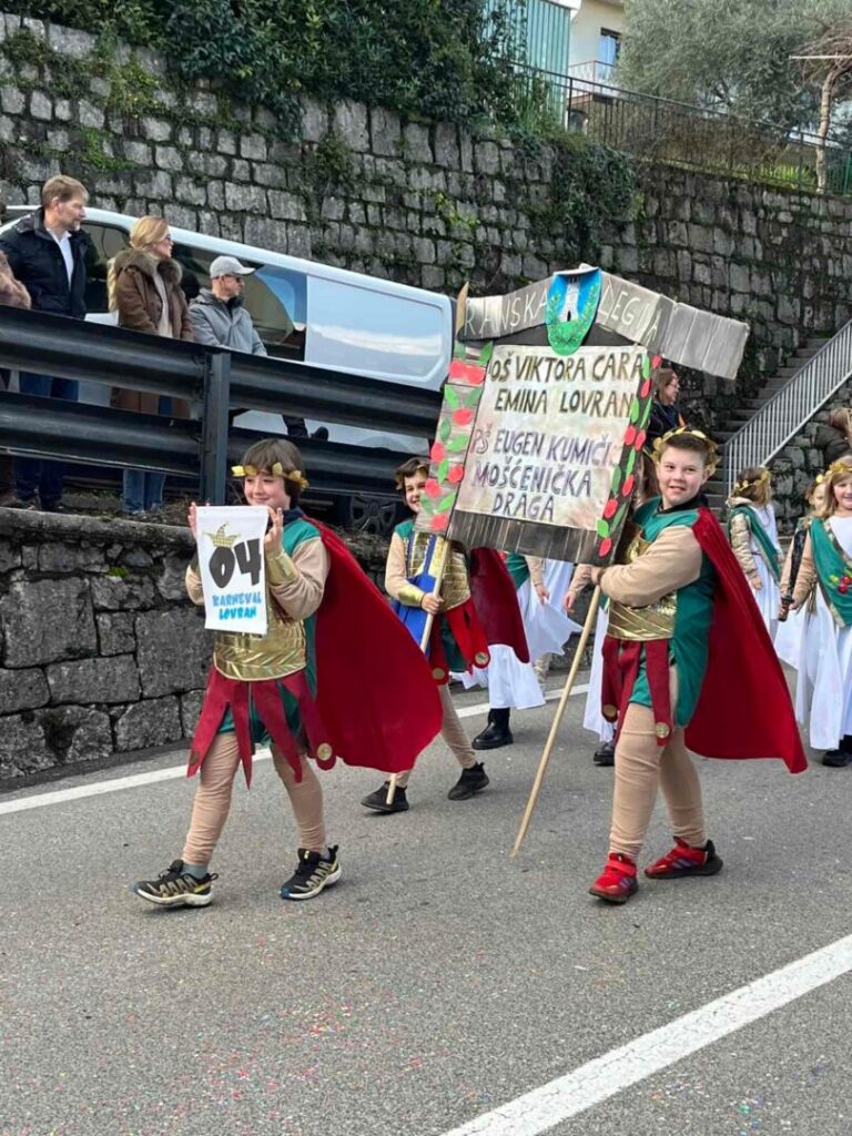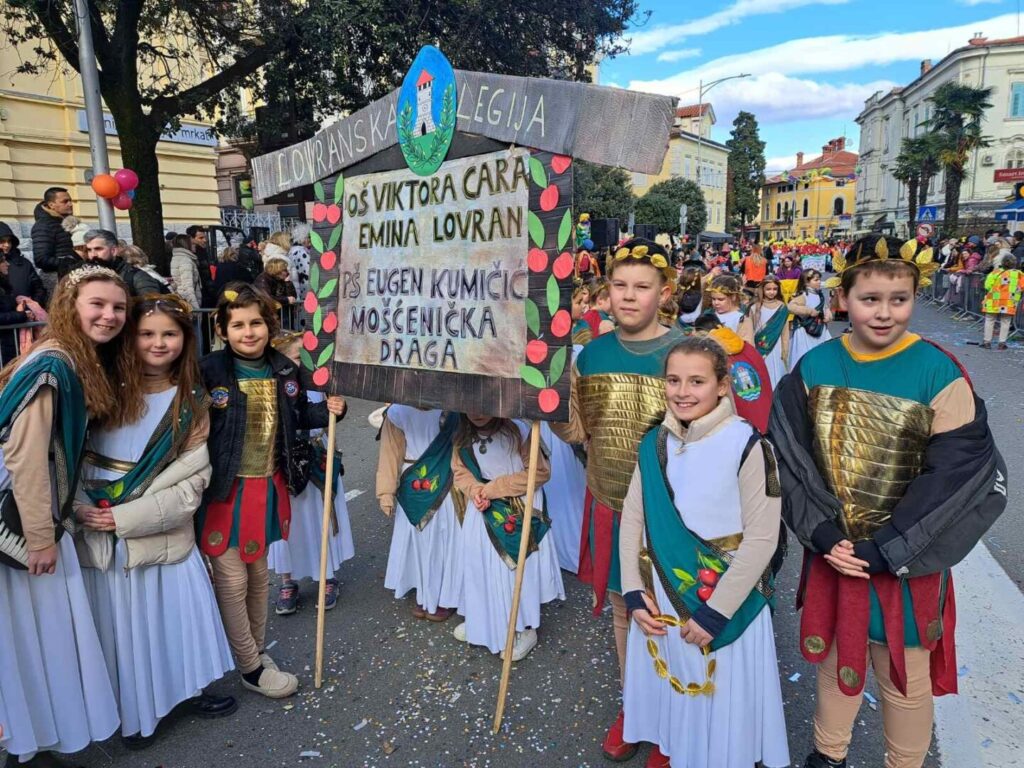 Učenice i učenici razredne nastave Osnovne škole Viktora Cara Emina i Područne škole Eugen Kumičić i ove su godine sudjelovali u tradicionalnim maškaranim povorkama u Opatiji i Lovranu, vođeni učiteljicama Ljiljanom Basarić, Rahelom Grozdanov, Snježanom Kovačević, Tanitom Kršanac, Sanjom Kusturin Barković, Martinom Matovinom i Alenkom Rubinić. U nedjelju 2.veljače predstavili su svoju masku Lovranska legija na Dječjem maškaranom korzu u Opatiji pred brojnim gledateljima. Prošli su glavnom opatijskom ulicom te predstavili svoju koreografiju na tri lokacije. Na kraju su se zasluženo zasladili krafnama. U nedjelju 8.veljače sudjelovali su na 57. Međunarodnoj karnevalskoj povorci u Lovranu. Povorka je započela u 14 sati, a učenici su se pokazali na glavnoj lovranskoj ulica koja je bila ispunjena velikim brojem posjetitelja.
